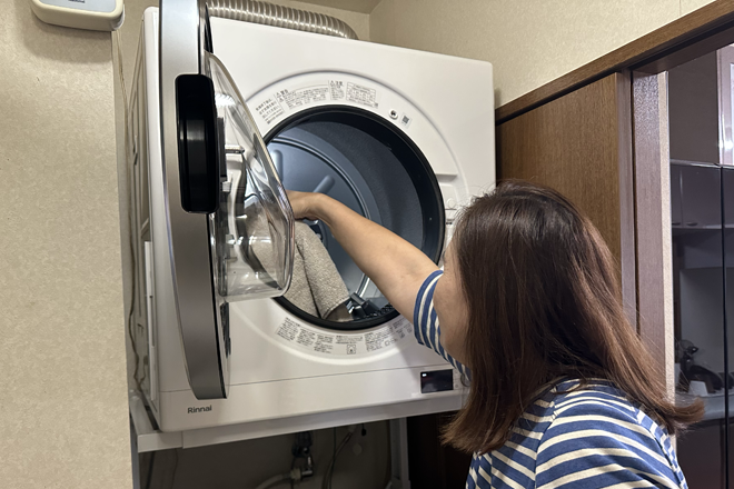 ご主人の職場でガス乾燥機の良さは知っていたものの、当時はドラム式の電気乾燥で十分と思って購入。「でも、娘の新居に“乾太くん”を設置していて、使わせてもらったら仕上がりにびっくり。娘も『もう外干しはしていない』というほどでした」。